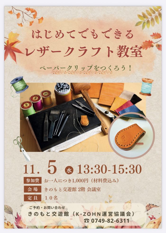 『はじめてでもできるレザークラフト教室』にお声がけ頂きました。